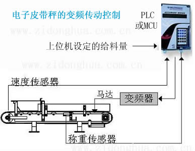 稱重給料機(jī)將經(jīng)過(guò)皮帶上的物料,通過(guò)稱重秤架下的稱重傳感器進(jìn)行檢測(cè)重量,以確定皮帶上的物料重量;裝在尾部滾筒或旋轉(zhuǎn)設(shè)備上的數(shù)字式測(cè)速傳感器,連續(xù)測(cè)量給料速度,該速度傳感器的脈沖輸出正比于皮帶速度;速度信號(hào)與重量信號(hào)一起送入皮帶給料機(jī)控制器,產(chǎn)生并顯示累計(jì)量/瞬時(shí)流量。給料控制器將該流量與設(shè)定流量進(jìn)行比較,由控制器輸出信號(hào)控制變頻器調(diào)速,實(shí)現(xiàn)定量給料的要求(如圖1)。